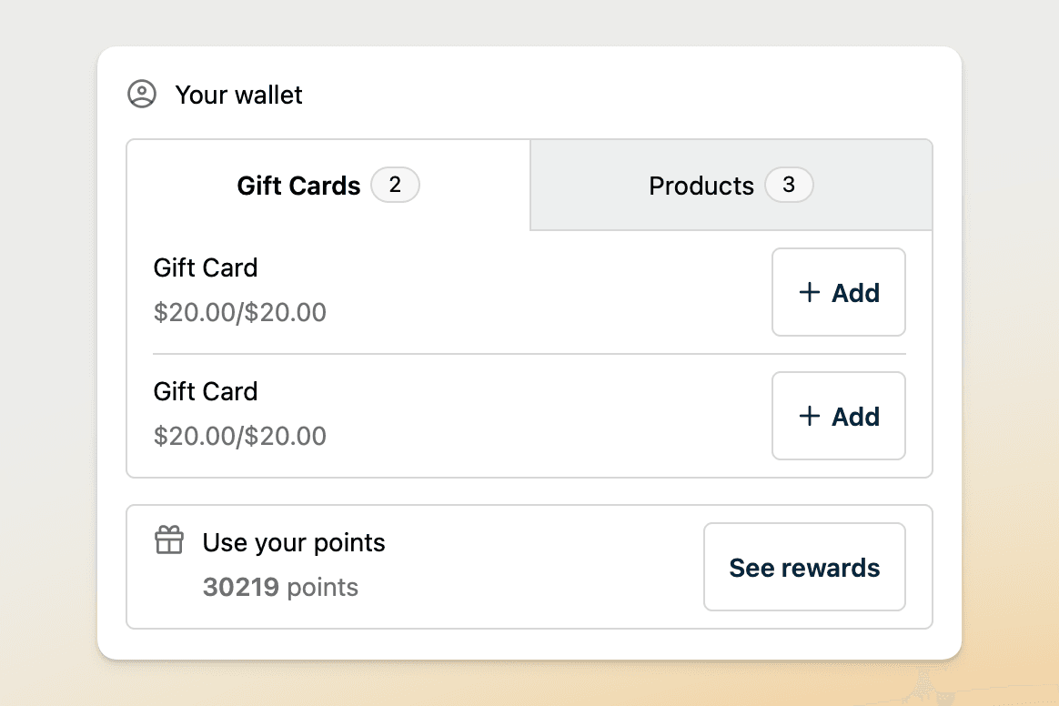 Gives logged in members options to redeem points for new rewards or apply existing rewards to checkout.